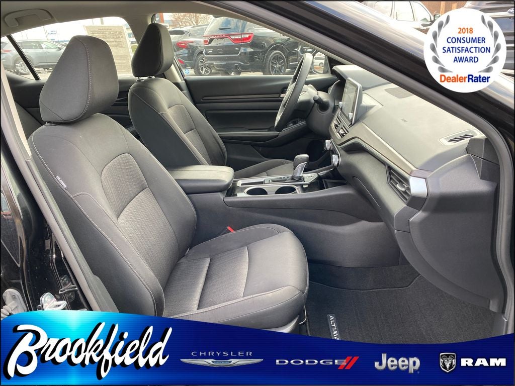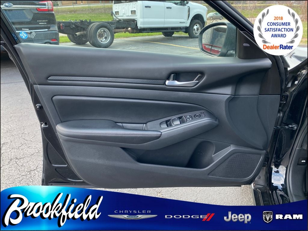 Super Black Clearcoat 2024 Nissan Altima 2.5 SV 2.5L 4-Cylinder DOHC 16V 4D Sedan 27/39 City/Highway MPG This vehicle features CVT with Xtronic, 2024 Nissan Altima 2.5 SV, 2024 Nissan Altima 2.5 SV in Super Black Clearcoat, 17 Alloy Wheels, 4-Wheel Disc Brakes, 6 Speakers, ABS brakes, Air Conditioning, Alloy wheels, AM/FM radio: SiriusXM, Auto High-beam Headlights, B-Pillar Sensor Delete, Blind Spot Warning, Brake assist, Bumpers: body-color, Cloth Seat Trim, Cruise Control, Delay-off headlights, Driver door bin, Driver vanity mirror, Dual front impact airbags, Dual front side impact airbags, Electronic Stability Control, Floor Mats/Trunk Mat/Hideaway Net, Four wheel independent suspension, Front anti-roll bar, Front Bucket Seats, Front Center Armrest, Front reading lights, Fully automatic headlights, Illuminated entry, Knee airbag, Low tire pressure warning, NissanConnect featuring Apple CarPlay, Occupant sensing airbag, Outside temperature display, Overhead airbag, Overhead console, Panic alarm, Passenger door bin, Passenger vanity mirror, Power door mirrors, Power driver seat, Power steering, Power windows, Radio data system, Radio: AM/FM Audio System, Rear anti-roll bar, Rear Parking Sensors, Rear reading lights, Rear seat center armrest, Rear side impact airbag, Rear window defroster, Remote keyless entry, Security system, Speed-sensing steering, Speed-Sensitive Wipers, Split folding rear seat, Steering wheel mounted audio controls, Tachometer, Telescoping steering wheel, Tilt steering wheel, Traction control, Trip computer, and Variably intermittent wipers.